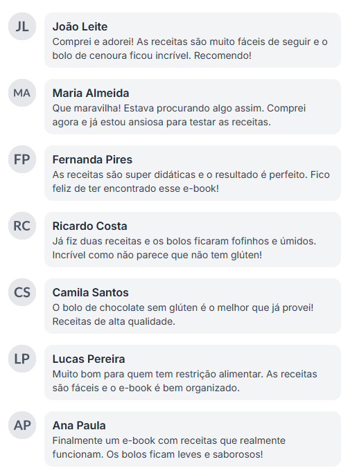 Depois de muitos testes, acertos e erros, criei receitas simples, rápidas e deliciosas, que qualquer pessoa pode fazer em casa. Hoje, compartilho esse conhecimento para provar que cuidar da saúde não significa abrir mão do prazer de um bolo quentinho e irresistível na mesa. 💛